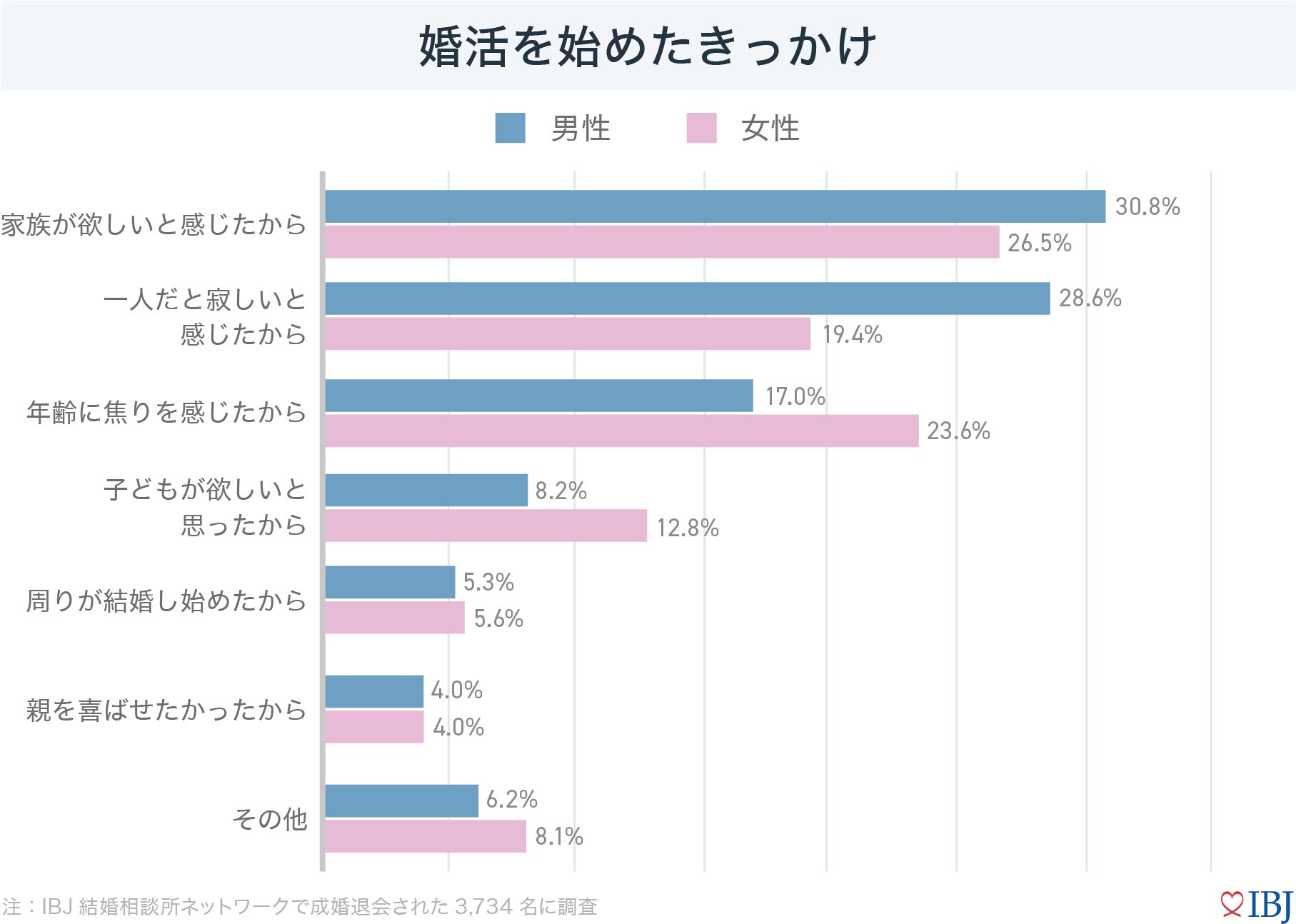 【婚活のIBJ】婚活を始める理由は男女で異なる⁉男性は“孤独感”女性は“年齢への焦り”がきっかけに。