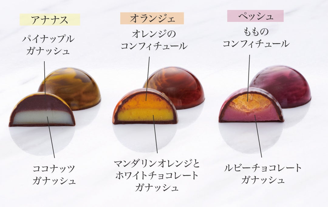 パイナップルや桃、オレンジの爽やかで甘酸っぱい味わいをチョコレートでお楽しみいただけます。