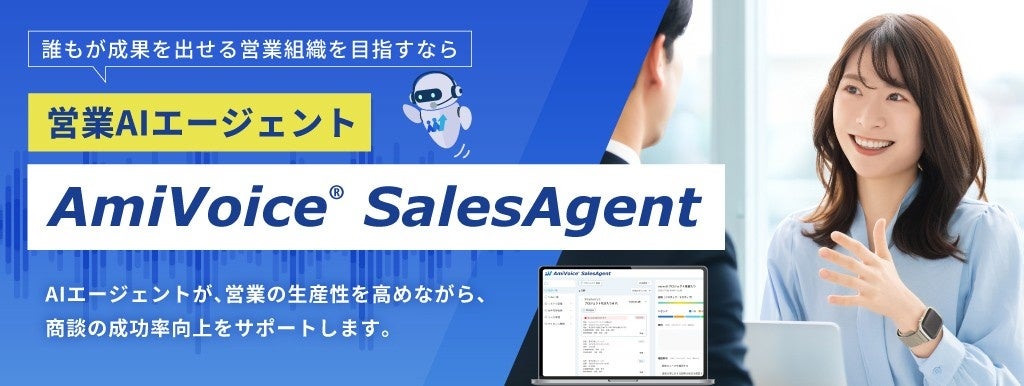 株式会社アドバンスト・メディア(本社:東京都豊島区、代表取締役会長兼社長:鈴木清幸 以下、アドバンスト・メディア)は、国内シェアNo.1※1のAI音声認識AmiVoiceと生成AI、感情解析を活用し、商談をリアルタイムで支援するソリューション「AmiVoice SalesAgent(アミボイス セールスエージェント)」を、正式リリースしました。商談の質向上・平準化により営業組織全体の強化を実現し、営業成果の最大化を支援します。