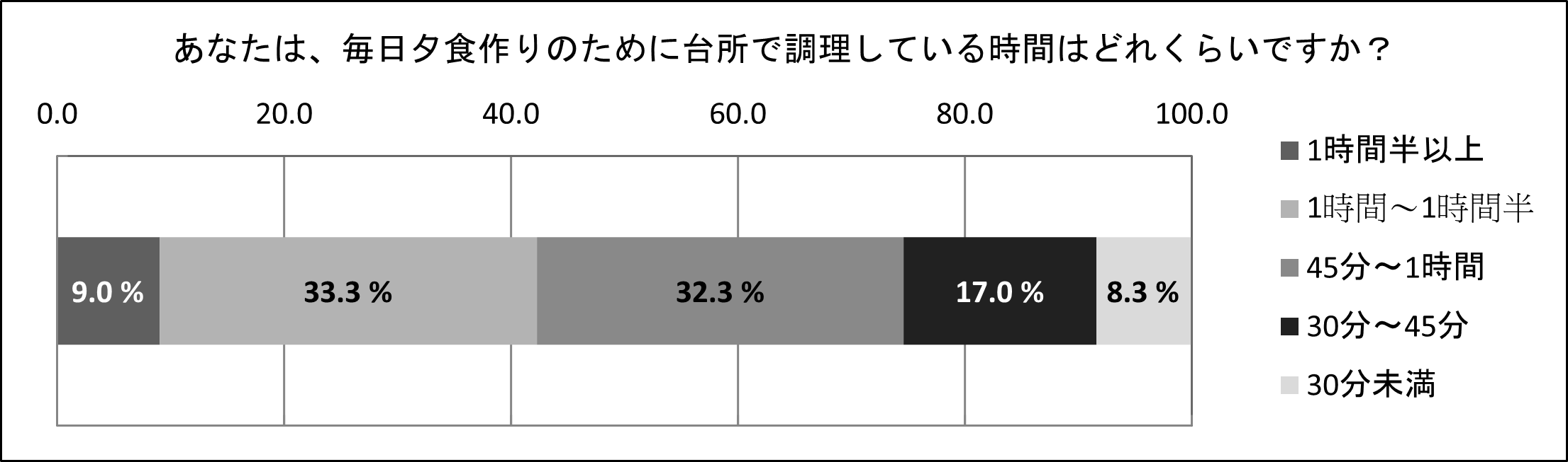 料理の悩みを聞いた設問では、「作るのにかかる時間を減らして子どもや自分の時間を増やしたい。(20代女性)」「もう少し時短できるようになりたい。(30代男性)」などの声も。