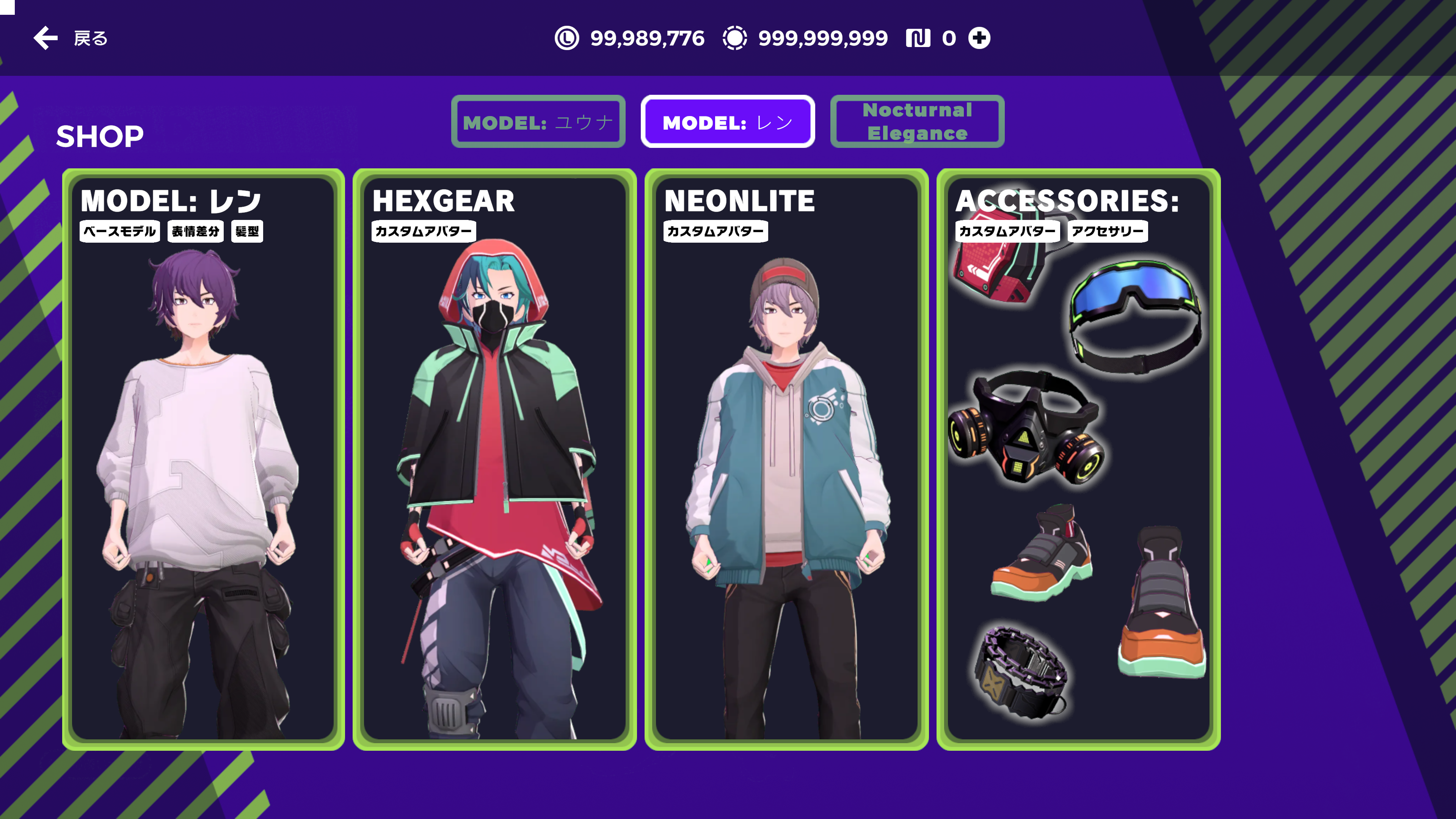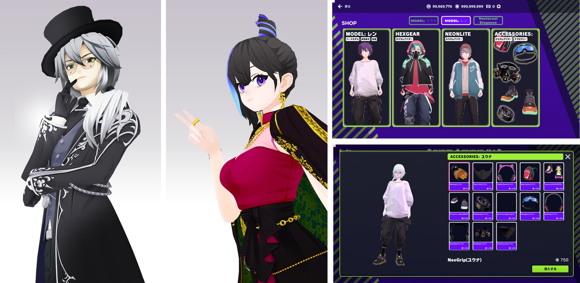 アバターは標準設定の他にゲーム内無料通貨(LUX)や有料通貨(NEWON)で購入することができ、カスタマイズが可能です。