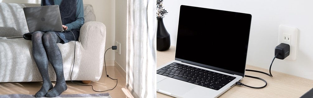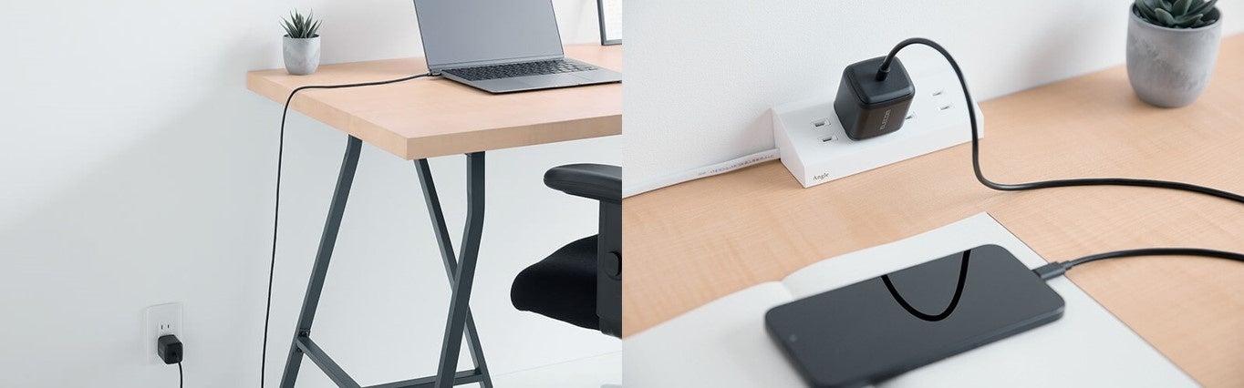 かさばりがちなノートパソコンのACアダプターをコンパクトに!USB Power Delivery(65W)に対応したUSB-Cケーブル一体型AC 充電器を新発売