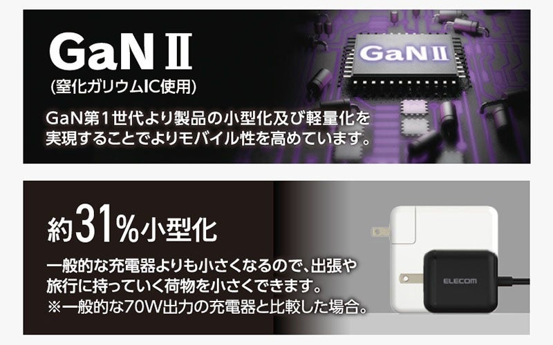 ※GaN IIはGaN第1世代より、製品の小型化および軽量化を実現することで、よりモバイル性を高めています。