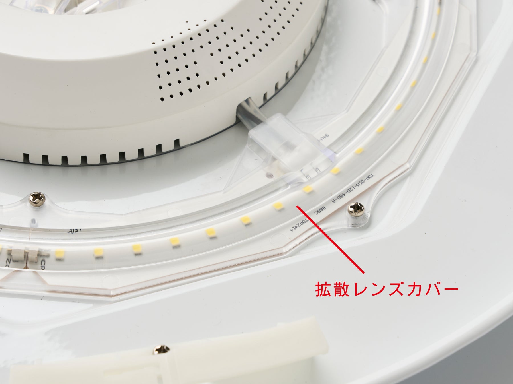 拡散レンズカバーにより、光を拡散させて、お部屋全体をムラなく照らします。