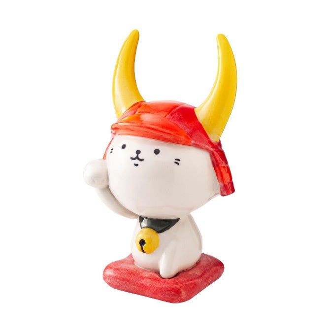 「国宝・彦根城築城400年祭」を盛り上げるために誕生した、彦根藩主・井伊直孝公を雷雨から救ったと伝えられる招き猫と、井伊軍団のシンボルである赤備えの兜がモチーフのキャラクターです。