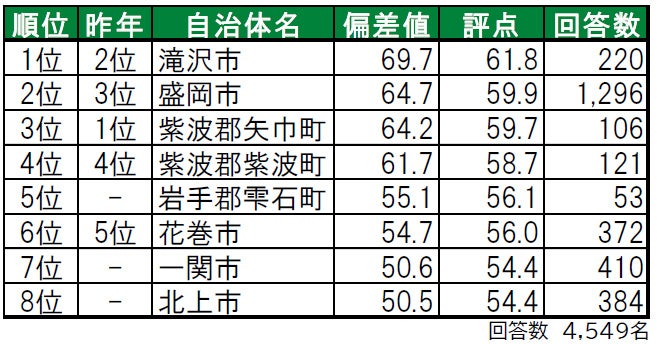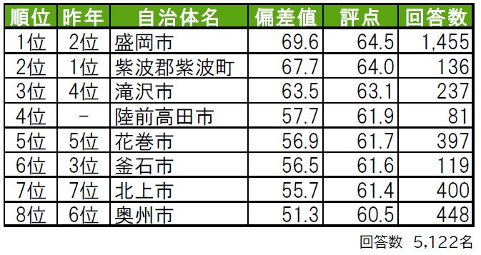 いい部屋ネット「街の幸福度 & 住み続けたい街ランキング2022<岩手県版>」(街の住みここちランキング特別集計)発表