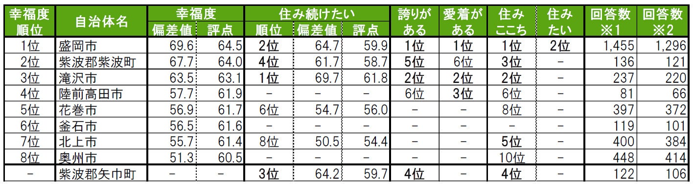 •新聞・雑誌、テレビ・ラジオ等の報道関係者におかれましては、本リリースを掲載・報道または引用する場合には、「街の幸福度&住み続けたい街ランキング2022<岩手県版>」と出所の表記をお願いします。