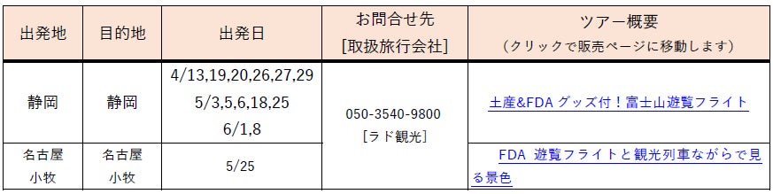 ※上記は、現在一般販売している旅行ツアーの一部となります。全てのチャーター便・遊覧フライトの運航予定を記載しているものではありませんのでご了承ください。