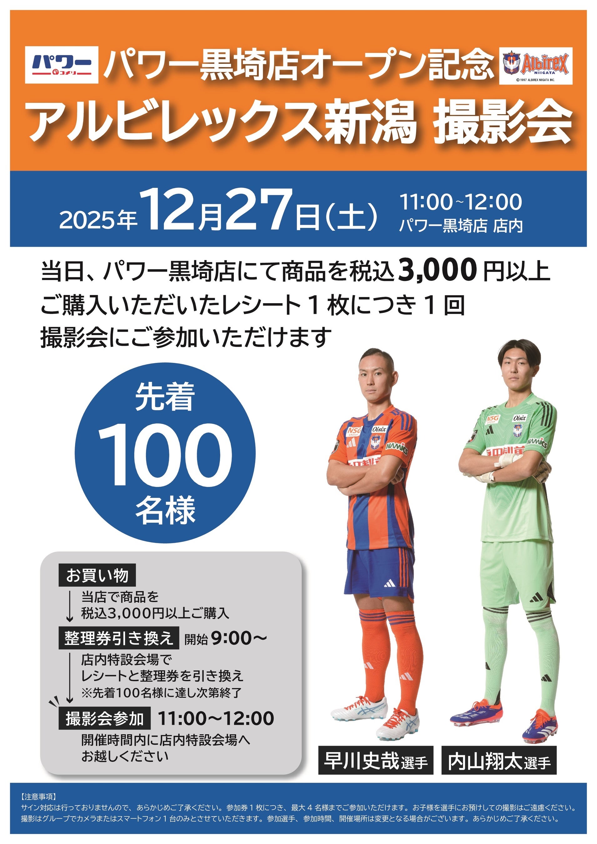 コメリパワー黒埼店 オープン記念アルビレックス新潟 選手撮影会イベント開催!