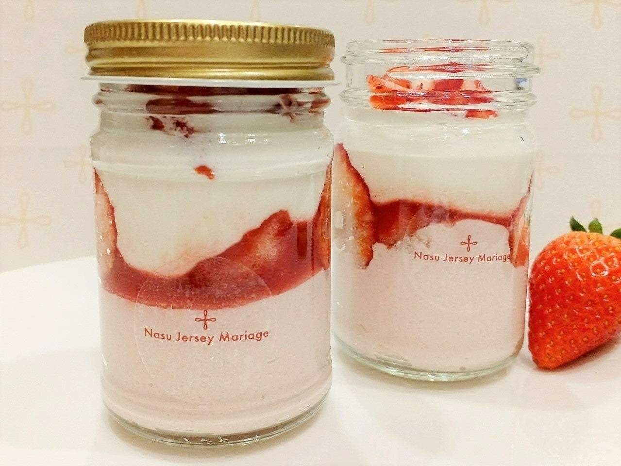 那須のジャージー牛乳と濃厚なマスカルポーネ、 いちごのジューシーな甘酸っぱさがマリアージュするいちごティラミスに、「あまりん」をトッピングしました。