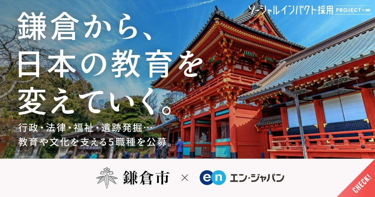 鎌倉市、エン・ジャパンを通して 新設ポジション含む5職種を一斉公募!
