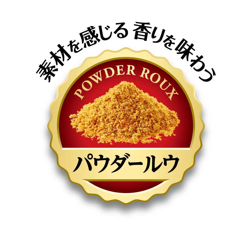 熱をかけるとおいしくなる素材でベースのルウを製造し、それを粗く裁断。その後、熱 を かけない方がおいしい素材を加えながら、細かく裁断しパウダーにします。固形のルウに比べ、油脂や小麦粉の使用が控えめであるため、スパイスの香りや素材のコク、旨みが際立つ製法です。