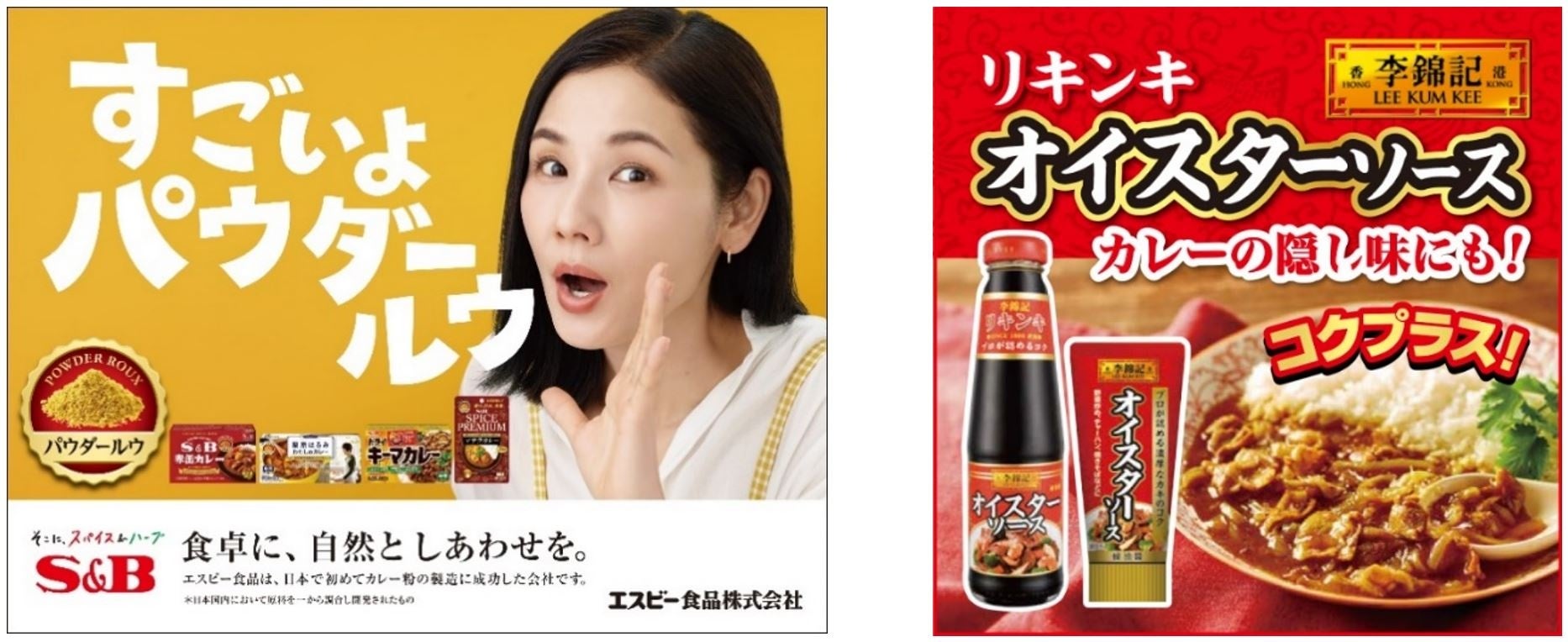 「すごいよ、パウダールウ」をキーワードにしたパウダールウシリーズと、カレーの隠し味としての使用を提案するオイスターソースの広告を掲載します。