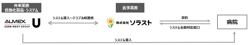 そうした状況のなか、今回ソラストが開始する外来業務のICT化パッケージサービスへ当社製品・システムがラインナップされることになりました。ソラストが医療事務の受託業務にあわせて保険証確認・診療費後払いシステム『Sma-pa TERMINAL』をはじめとする当社の製品・システムを医療機関へ提案、実際に導入いただける場合は当社よりご提供します。