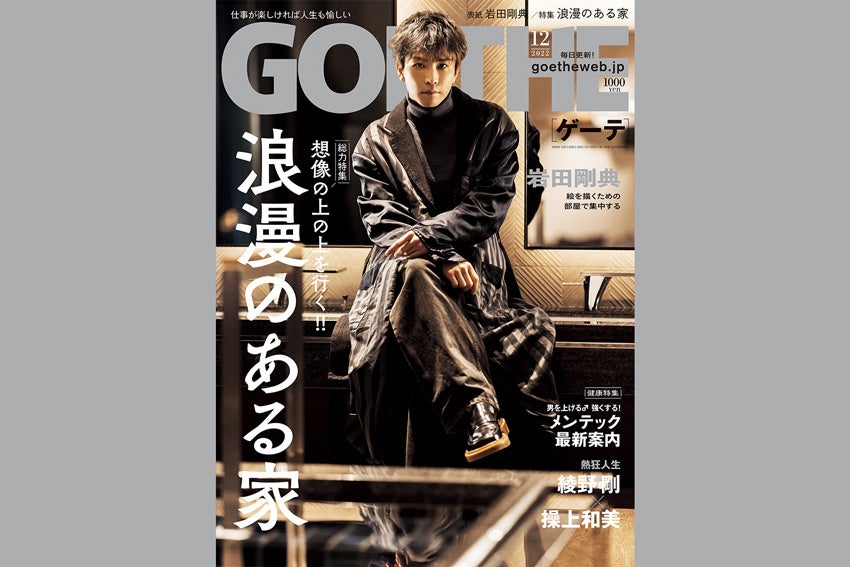 仕事に遊びに一切妥協できない男たちが、人生を謳歌するためのライフスタイル誌[ゲーテ]12月号が2022年10月25日に発売となる。今号は浪漫のある家特集。岩田剛典にとっての魅力的な家とは。さらに、俳優 綾野剛×写真家 操上和美による対談企画ほか、メンテック最新案内2022も必見!