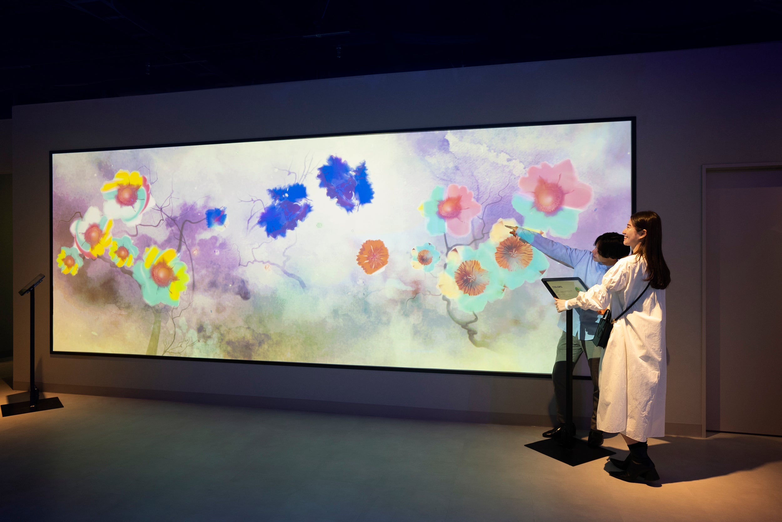 自分のテイストに合ったマッピングが背景に現れ、フラワーアートのフォトスポットとしても楽しむことが出来る空間。