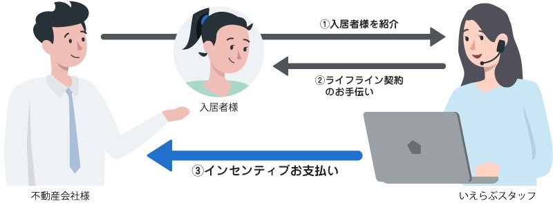 *いえらぶコミュニケーションズでは、「空室通電」や「外国語対応ライフライン取次」など、不動産アライアンス事業を中心としたサービスを提供しています