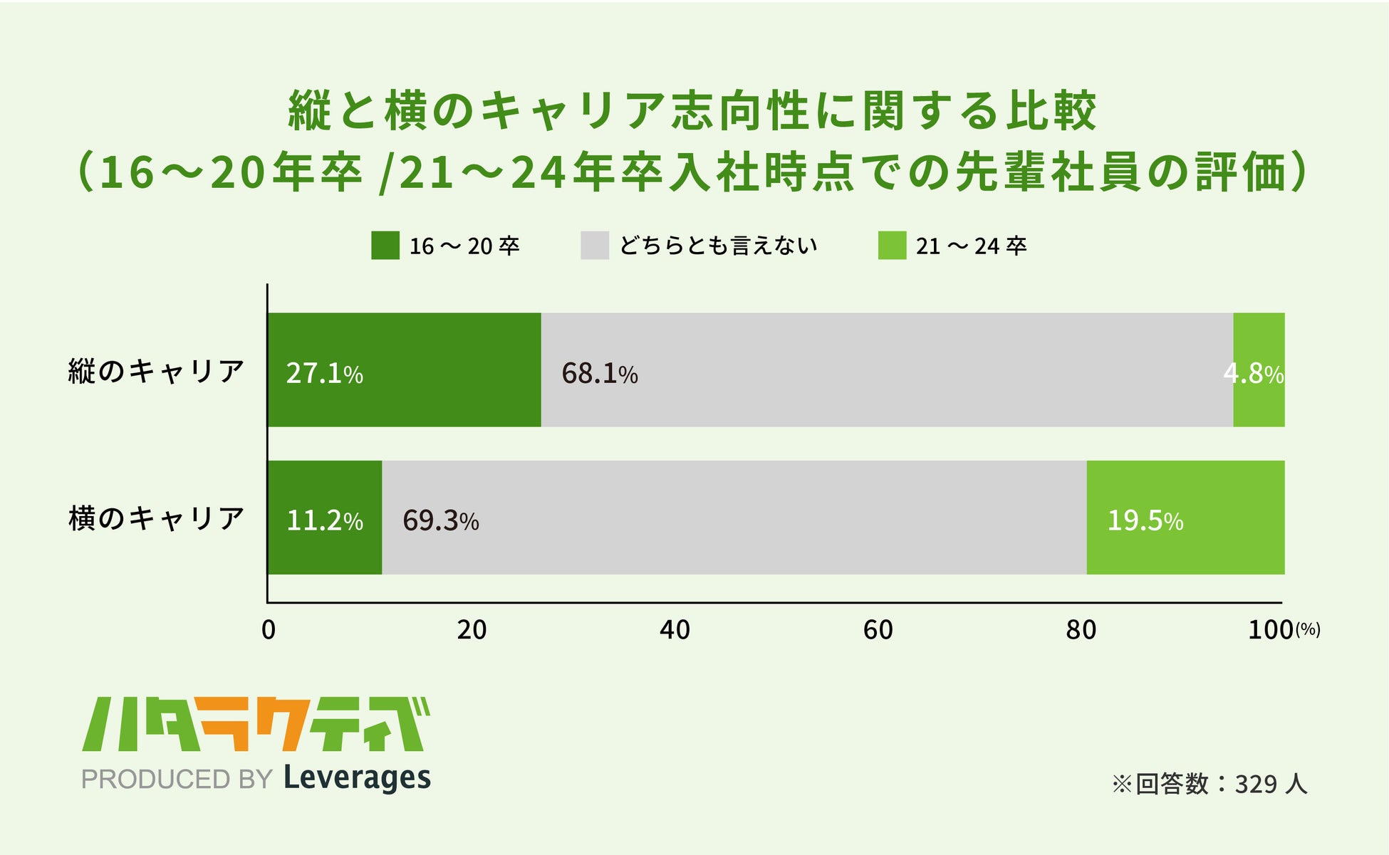3.21~24年卒の「横のキャリア志向」、ミドル・シニア社員の認識は16~20年卒比で約2倍