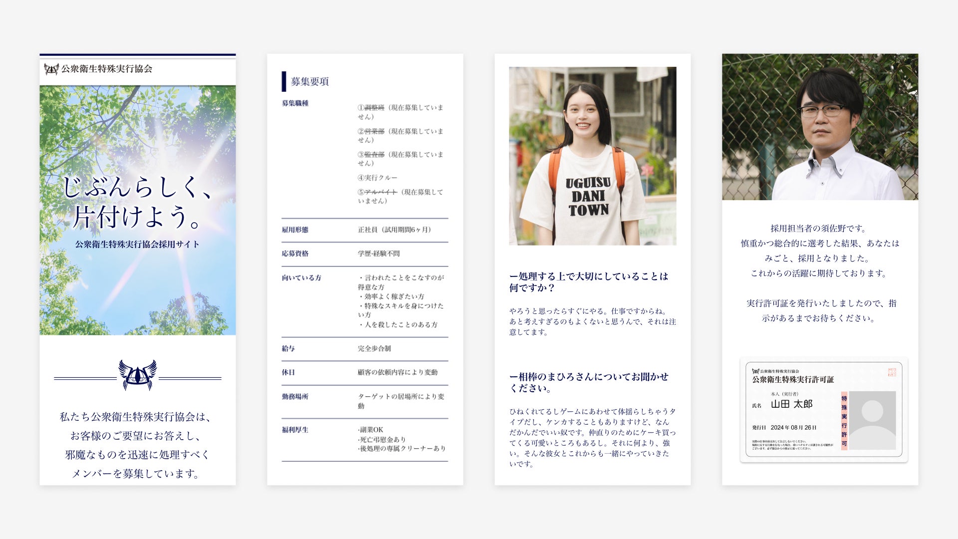 “殺し屋”オーディション動画以外にも、ドラマ化&映画公開を記念して、ちさととまひろが所属する殺し屋協会の表の顔「公衆衛生特殊実行協会」のリクルートサイトを8月25日に公開しました。