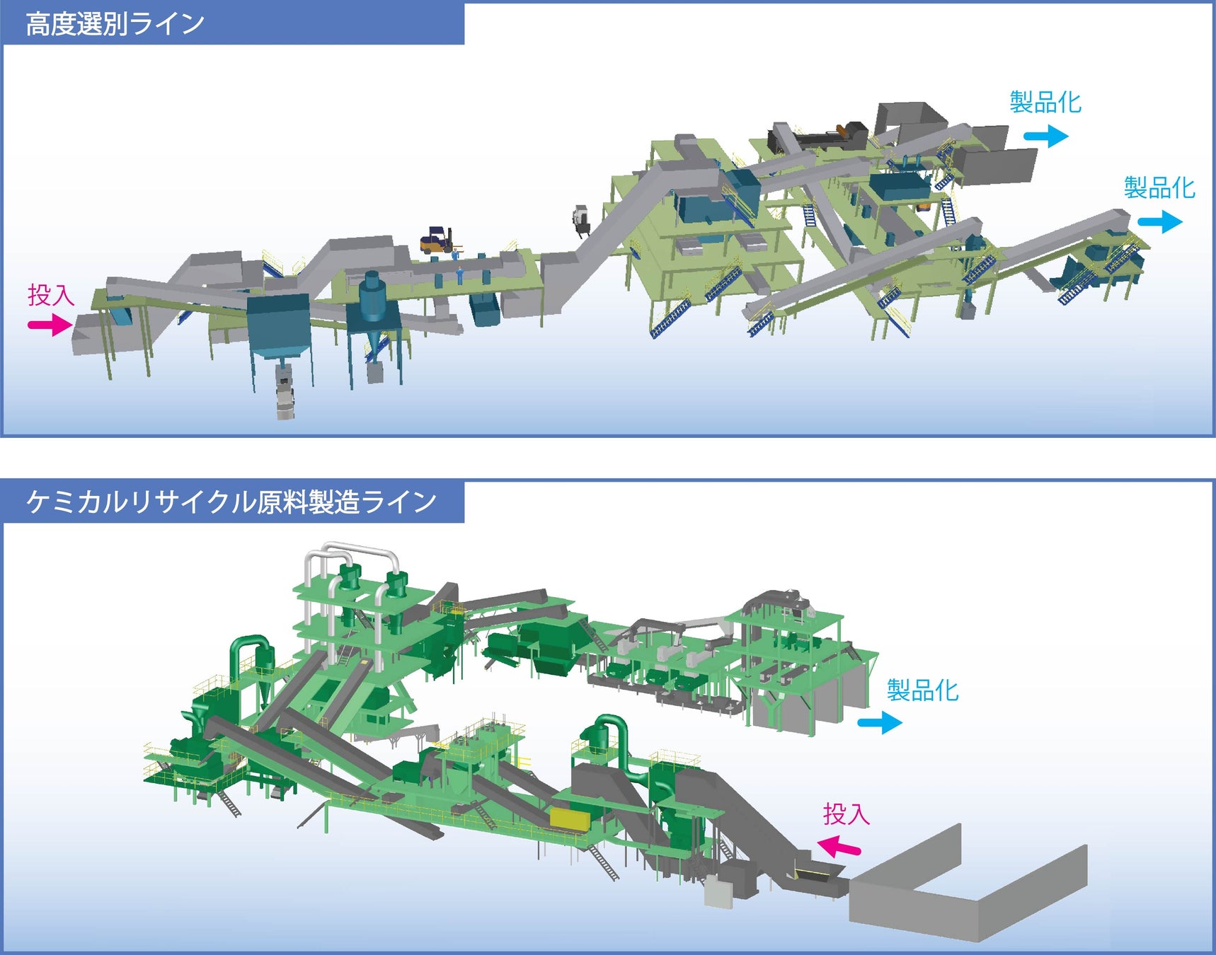 本施設は2025年4月の本格稼働を目指し、2024年10月よりケミカルリサイクル用原料製造施設(圧縮・固化)を先行稼働し、その後、高度選別設備を稼働する計画です。