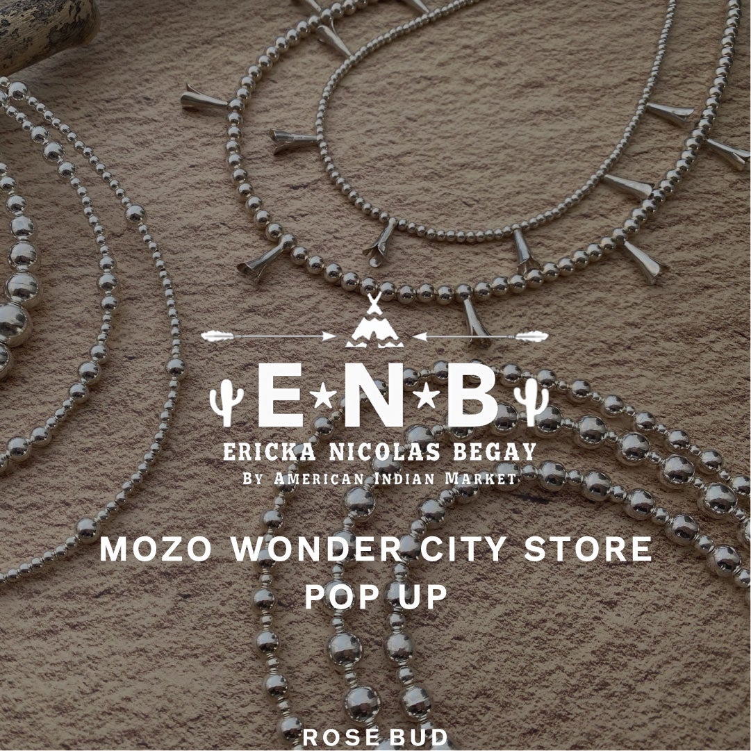 若手女性アーティストによるインディアンジュエリーブランド「Ericka Nicolas Begay」のPOP UPが開催。現代において、ネイティブアメリカン本来の考え方や歴史を大切に思い、シルバーを溶かすところから全ての工程を手作業で行う、インゴットシルバーという伝統的な技法にこだわった、温もりや着け心地の柔らかさ、色の深さが特徴のジュエリーをぜひ店頭にてご覧ください。