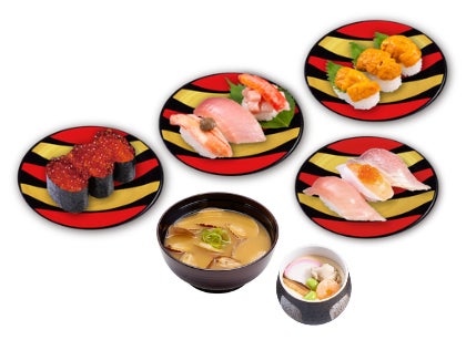 贅沢かにとろ三昧・贅沢いくら三昧・贅沢新物うに三昧・みなみ鮪中とろを使用したとろ三昧の豪華ネタ寿司12貫に加え、あさりの味噌汁と茶碗蒸しがいっしょに楽しめるセットです。