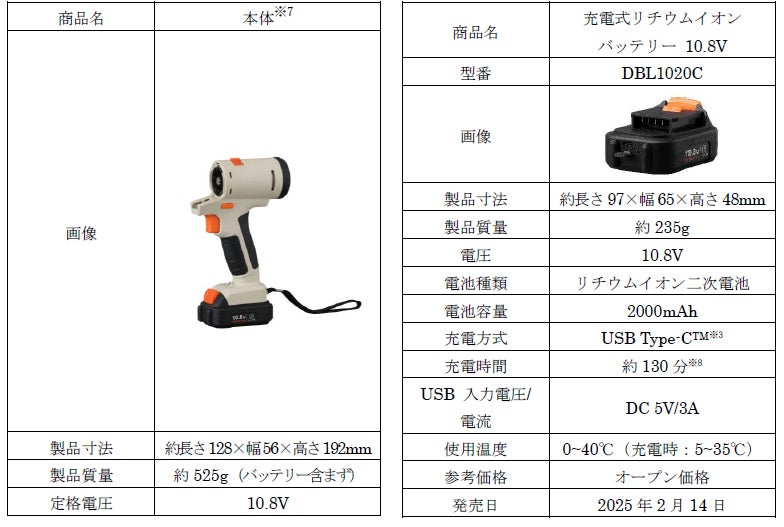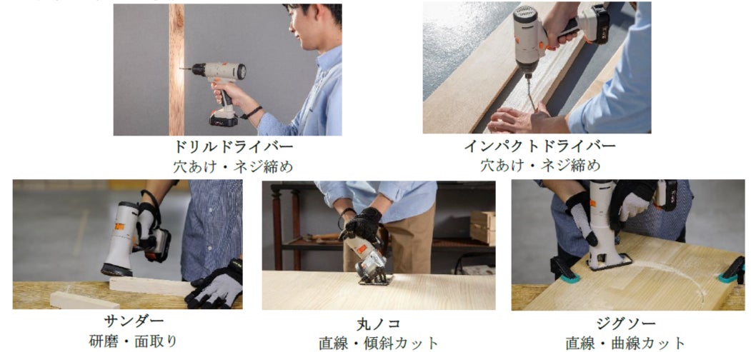 バッテリーはUSB Type-C™(※4)端子のため専用の充電器が不要で、USB充電器(※5)やモバイルバッテリーなどを使用して充電できます。簡単な作業から力が必要な作業にも対応できる10.8Vの電圧で、家具の組み立てやDIY、修繕といった様々なシーンで活用できます。