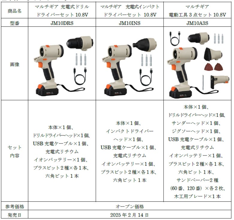 ヘッド交換でカット、ネジ締めなど1台5役(※1)!「電動工具 10.8Vマルチギア」発売