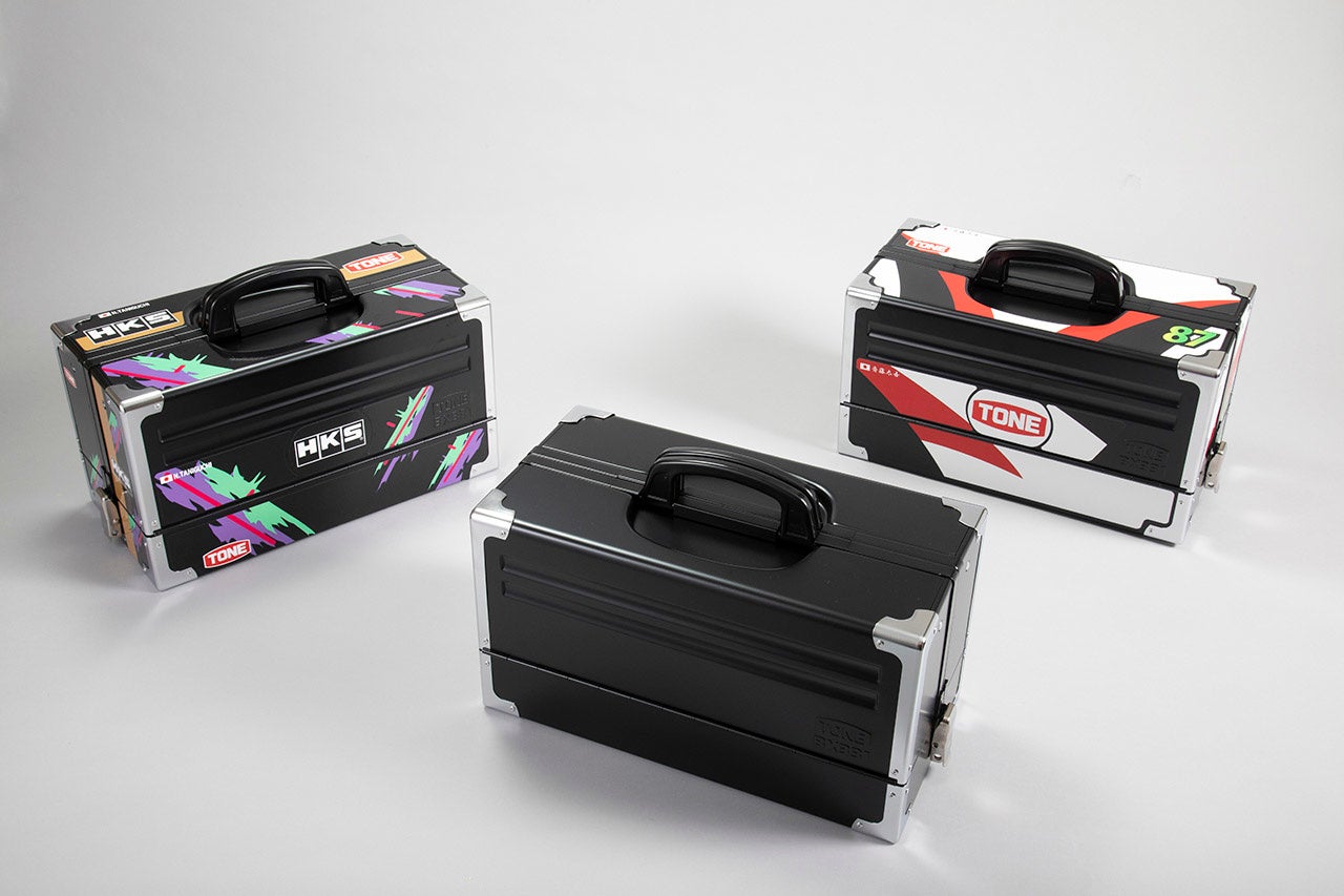加えて今回、昨年、期間限定でセット販売され好評を得た「TONE TSAT330 特注工具キット(谷口信輝バージョン)/(斎藤太吾バージョン)」についても、同日より数量限定で再販を開始します。こちらは、谷口信輝バージョン(HKSカラー)、太吾バージョン(D1スープラ GRカラー)のステッカーを「TONE TSAT330 特注工具キット」に追加で同梱したもので、ステッカーには谷口、斎藤両選手の直筆サインが入り、こちらも名入れサービスが可能でワークグローブ付きとなっています。谷口・斎藤両選手のアイテムも数量限定のため予定数に達し次第、販売終了となります。