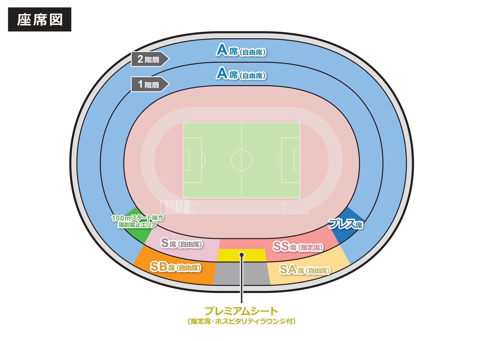 ※プレミアムシート、SS席、S席、SA席、SB席の購入でA席での観戦が可能です。