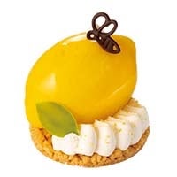 「まるでレモンそのもの⁉」と思ってしまいそうなフレッシュな見た目のプチガトー『ハニーレモン』。つややかなレモンにとまるミツバチがキュートな、夏限定ケーキです。ミルキーな甘さとレモンの爽やかな香りが相性抜群な ホワイトチョコ&レモンのふんわりムースに、スペイン産レモンが甘酸っぱいはちみつレモンゼリーをしのばせました。クッキー生地のサクサク食感と、そっと散らしたレモンピールがアクセント。レモンをまるごと味わえるような、ジューシーでかわいい夏のムースケーキです。