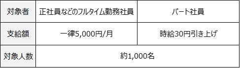 2022年10月 :特別手当として、正社員などのフルタイム勤務社員は5,000円/月を支給し、パート社員は