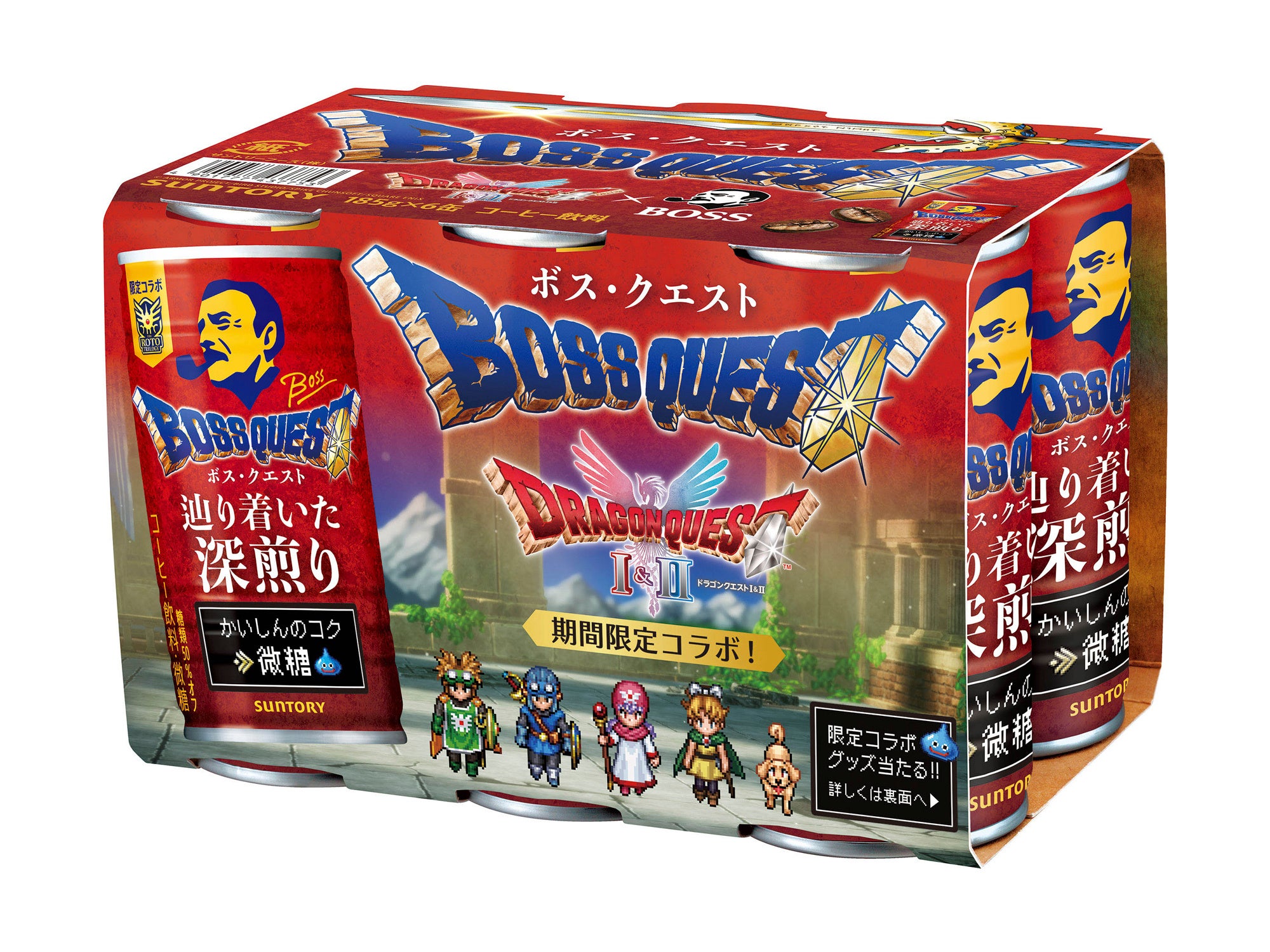 また、「BOSS」の主力5商品とコラボ商品「BOSS QUEST 辿り着いた深煎り」の6缶パックの外装カバーを、勇者や冒険を共にする仲間達をあしらったコラボオリジナルデザインにリニューアルします。