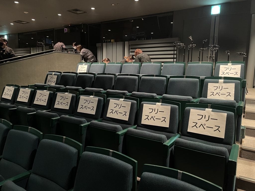 1階席、2階席の後方に設置されたフリースペース。1階席のフリースペースの後ろには通常公演より拡大された車椅子スペースが用意された。盲導犬とともに客席へ着席することも可能。