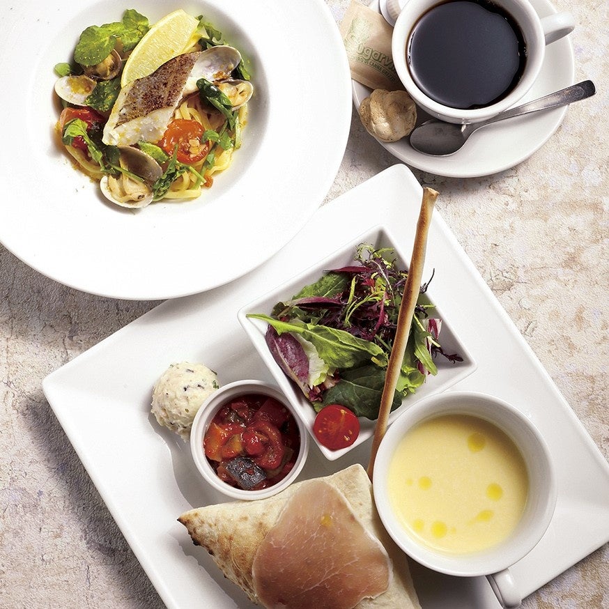 「長崎県産 真鯛のアクアパッツァ風 リングイネ」は、単品だけでなくワンプレートに盛り込んだ前菜5種とドリンク付きの「季節のピアットウニコ」としてもご用意しております。