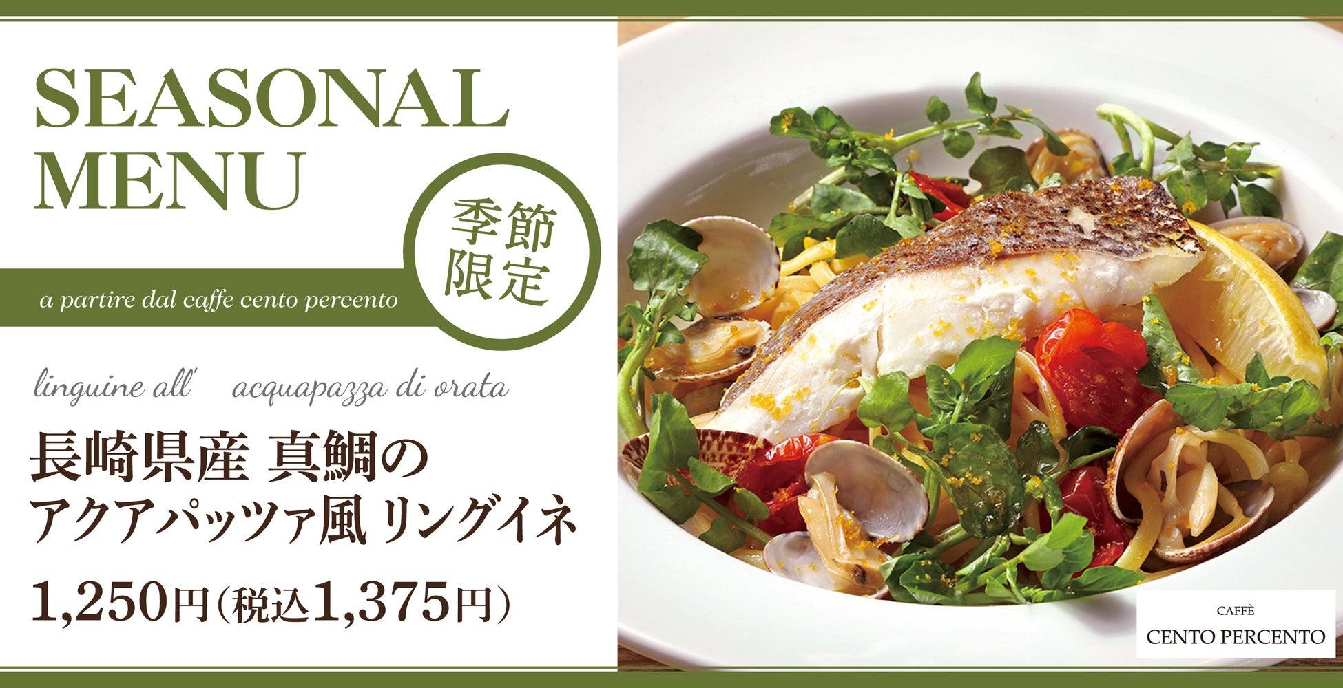 旨味を凝縮「長崎県産 真鯛のアクアパッツァ風 リングイネ」チェントペルチェントに期間限定で新登場
