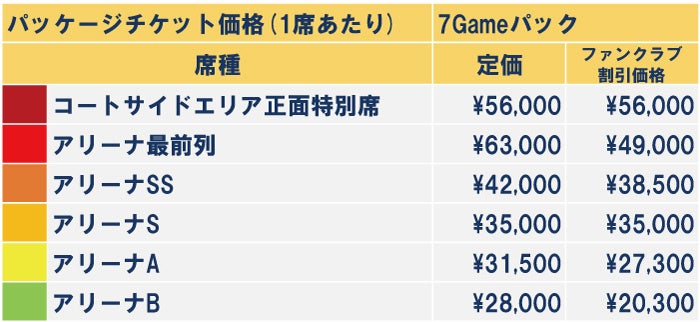 ▽チケット価格(7試合分の価格です)