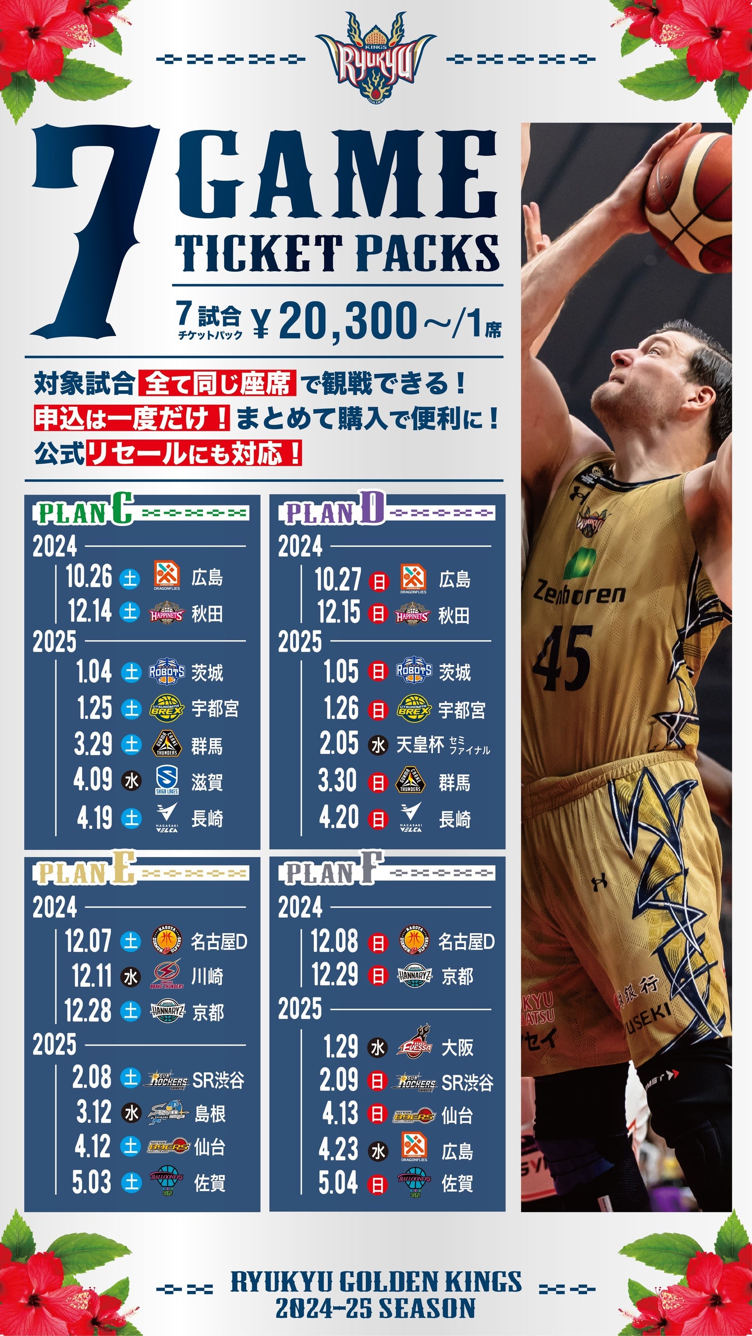 2024-25シーズンレギュラーシーズン、7試合の試合観戦が可能なパッケージチケットです。