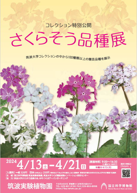 【国立科学博物館 筑波実験植物園】わずか 1 種の野生種をもとに作出された多様な園芸品種~コレクション特別公開「さくらそう品種展」のご案内~
