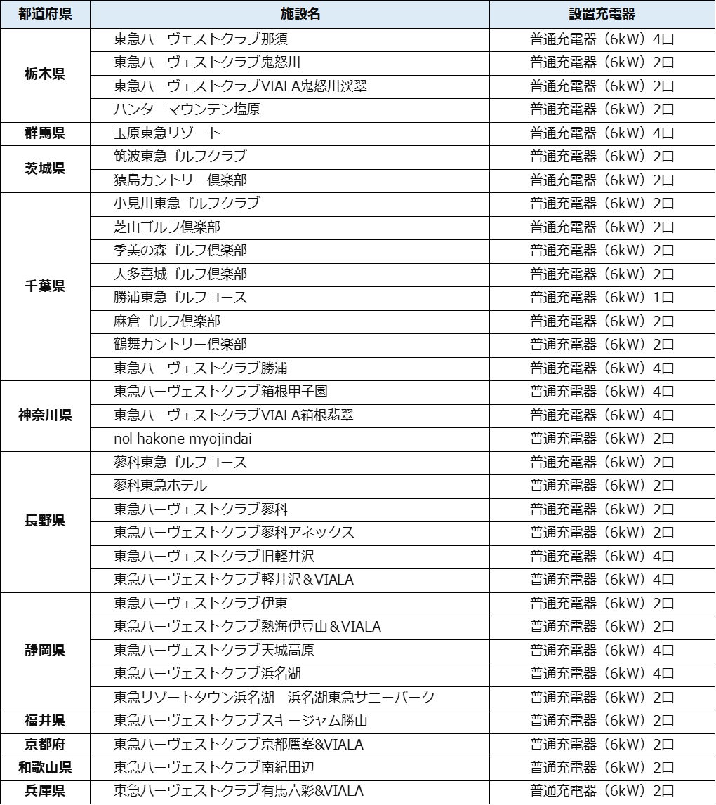 東急不動産株式会社(本社所在地:東京都渋谷区、代表取締役社長:星野 浩明、以下、「東急不動産」)と 東急リゾーツ&ステイ株式会社(本社所在地:東京都渋谷区、代表取締役社長:粟辻󠄀 稔泰、以下、「東急リゾ ーツ&ステイ」)は、運営する全国 33 のリゾート施設に、Terra Charge 株式会社(本社所在地:東京都港区、代表取締役社長:徳重 徹、以下「Terra Charge」)が展開する EV 充電器「Terra Charge(テラチャージ)」を設置、サービス提供を開始いたしましたのでお知らせいたします。