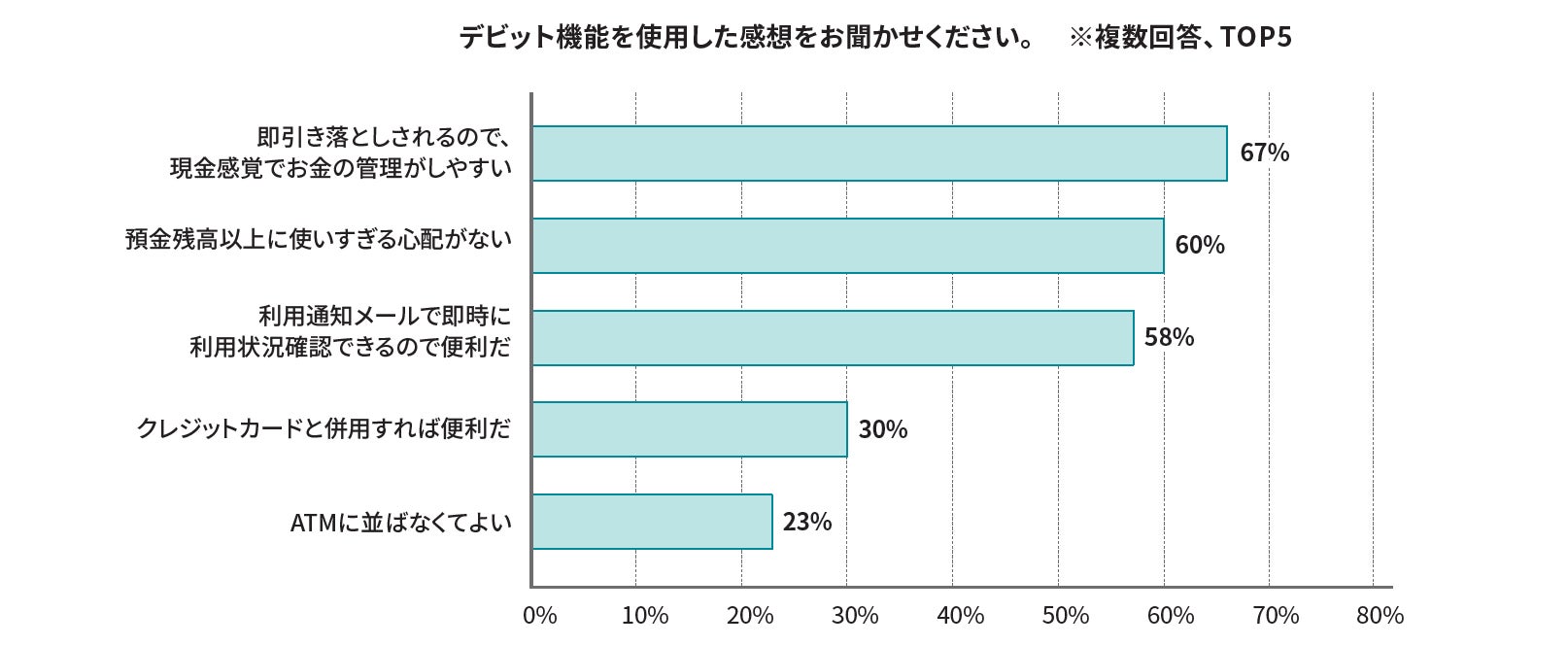デビット機能を使用した感想をお聞かせください。 ※複数回答、TOP5
