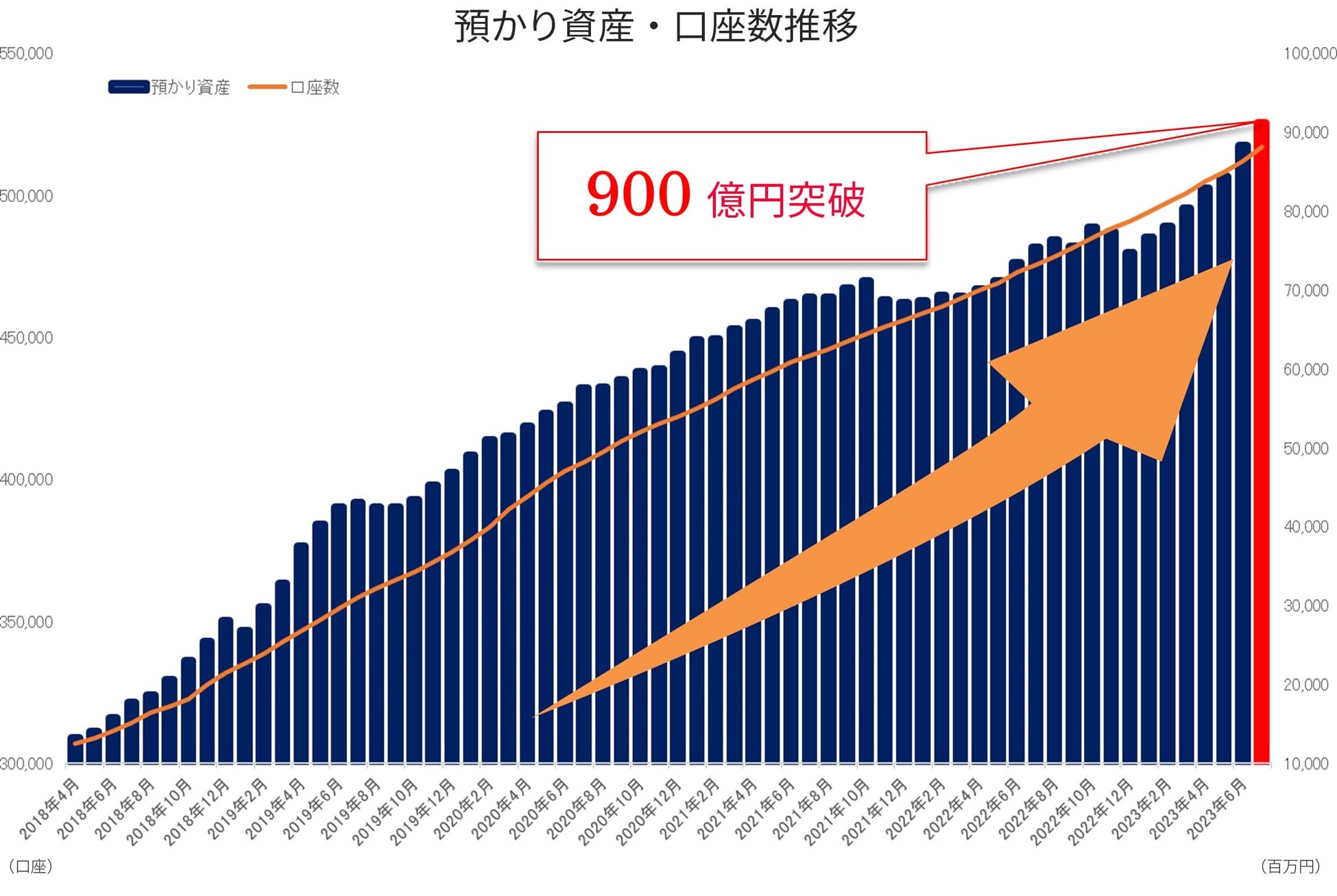 このような施策を実行し、数多くの方々からご支持いただいた結果、2023年4月に預かり資産800億円に到達、そこからわずか約4ヶ月で100億円増の900億円を突破することとなりました。これもひとえに皆様のご愛顧の賜物と心より感謝申し上げます。