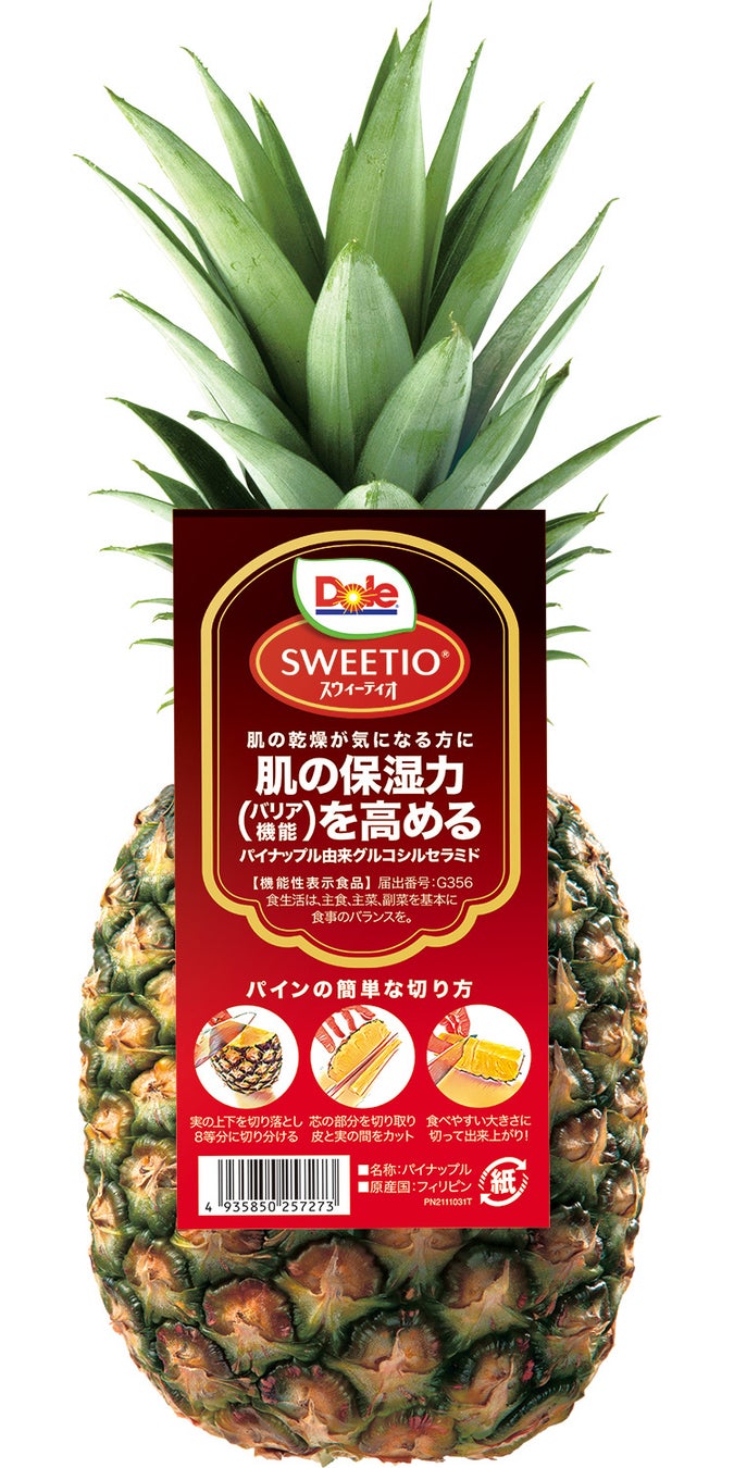 日本人の味覚に合わせて開発された「Doleスウィーティオパイナップル」は酸味を抑え、豊潤な甘さと香りが特徴のおいしさの追求から生まれた格別のパイナップルです。