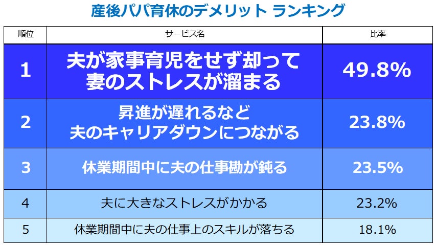 3.産後パパ育休のデメリット「却って妻のストレスが溜まる」49.8%