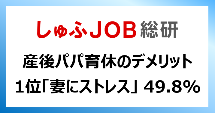 産後パパ育休について、就労志向の女性はどう思ってる? デメリットだと思うことの1位は…「妻にストレス」49.8%、メリットの1位「家事育児の経験が夫の視野を広げる」58.9%