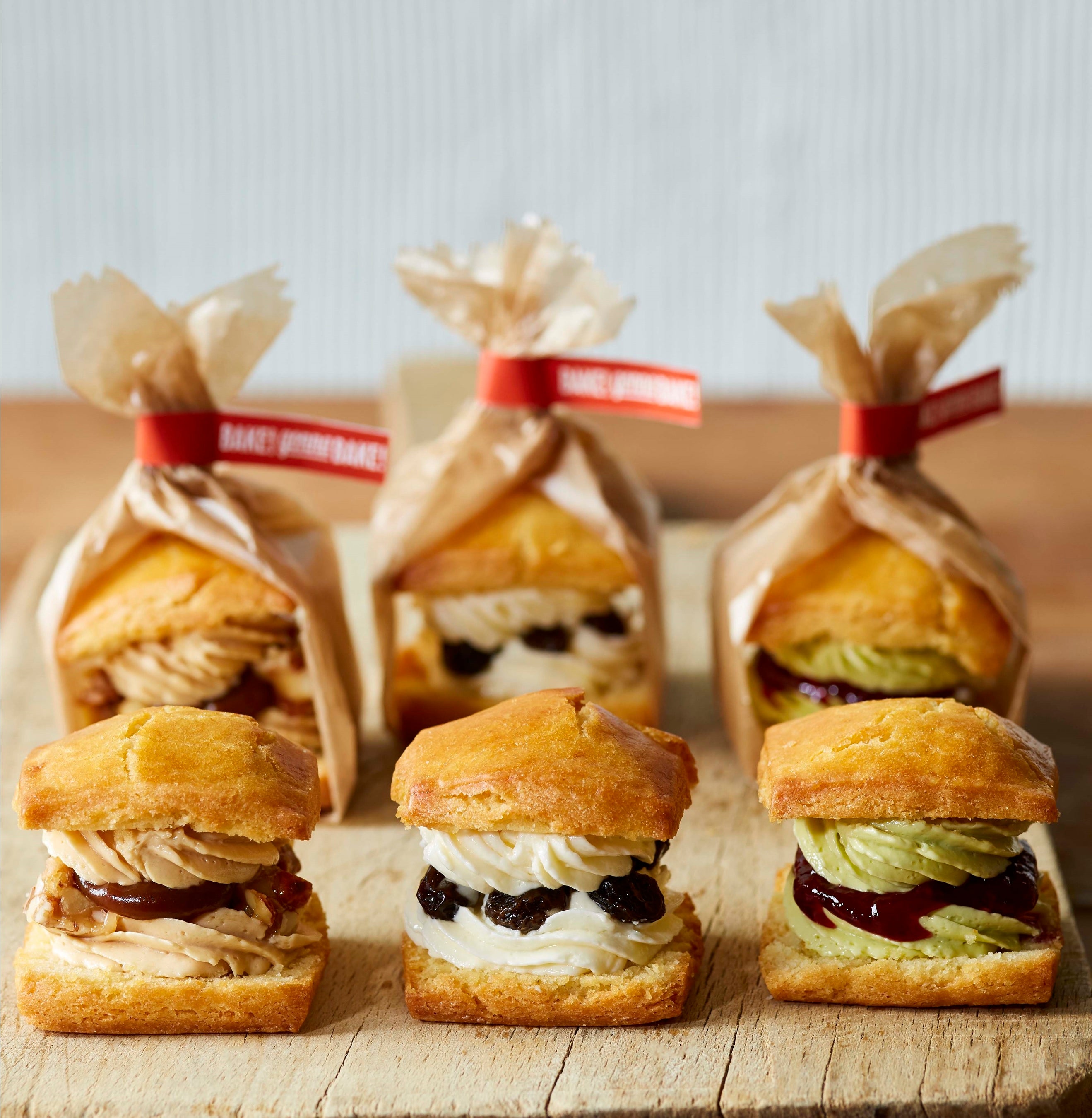 小麦の甘みが広がるスコーンに発酵バターを使用した風味豊かで軽やかな口どけの特製ラムバタークリームと芳醇な香りのラム酒をたっぷりまとったラムレーズンをサンドしました。※写真はイメージです