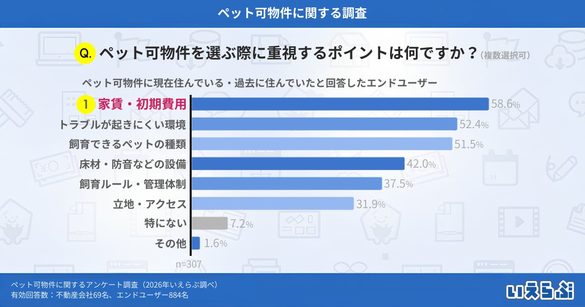 ペット可物件を探す際に苦労した点、1位は「家賃・初期費用」、飼育ルールの制限も課題に|いえらぶ調べ