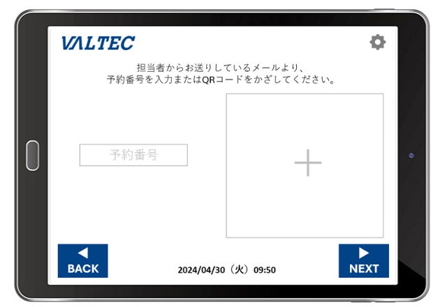 来社時、エントランスへ設置された受付タブレットから二次元コードを選択。