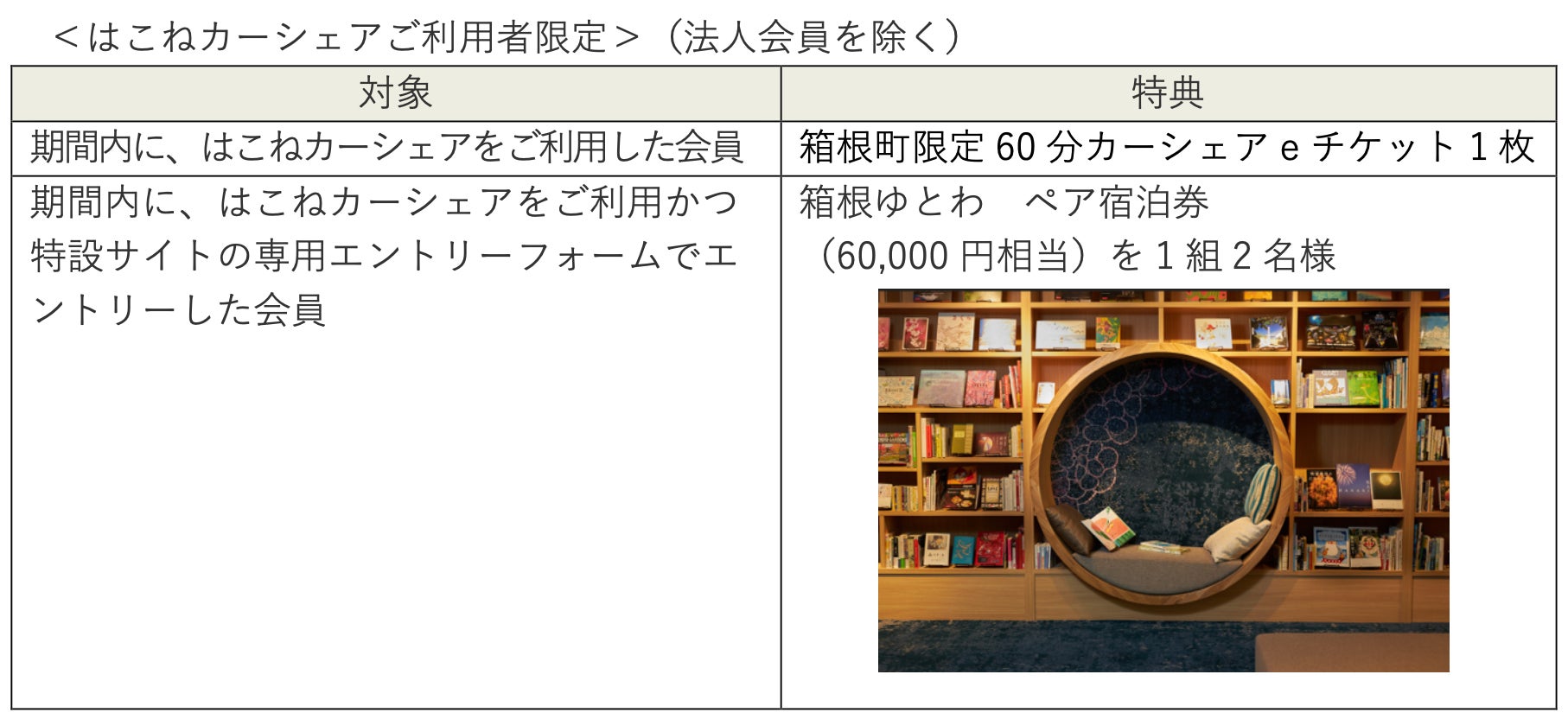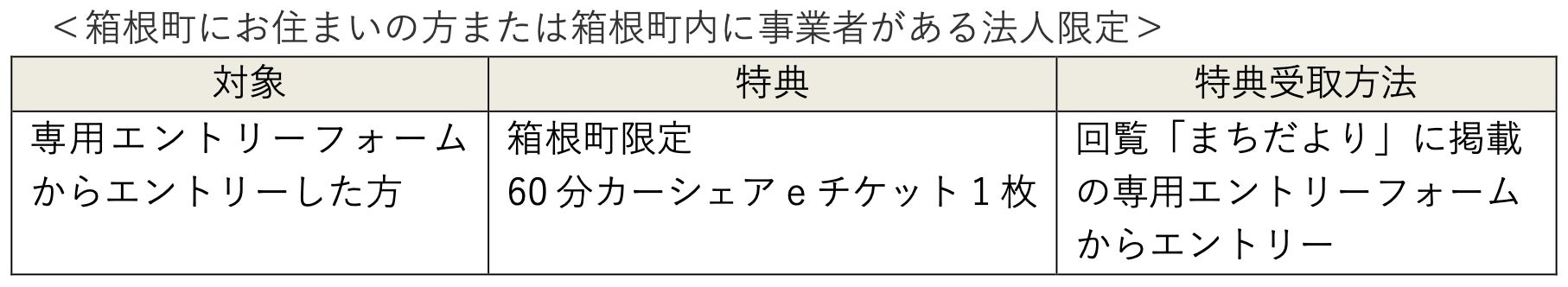 〜箱根町民の方に、もれなく箱根町限定60分カーシェアeチケットをプレゼント!〜