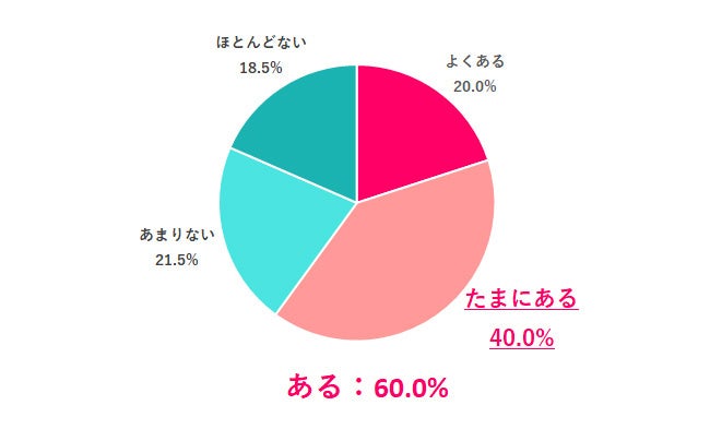 趣味がないことをコンプレックスに感じたことがあるか聞いたところ、「よくある」20.0%、「たまにある」40.0%で、合わせて60.0%の人がコンプレックスに感じたことがわかりました。